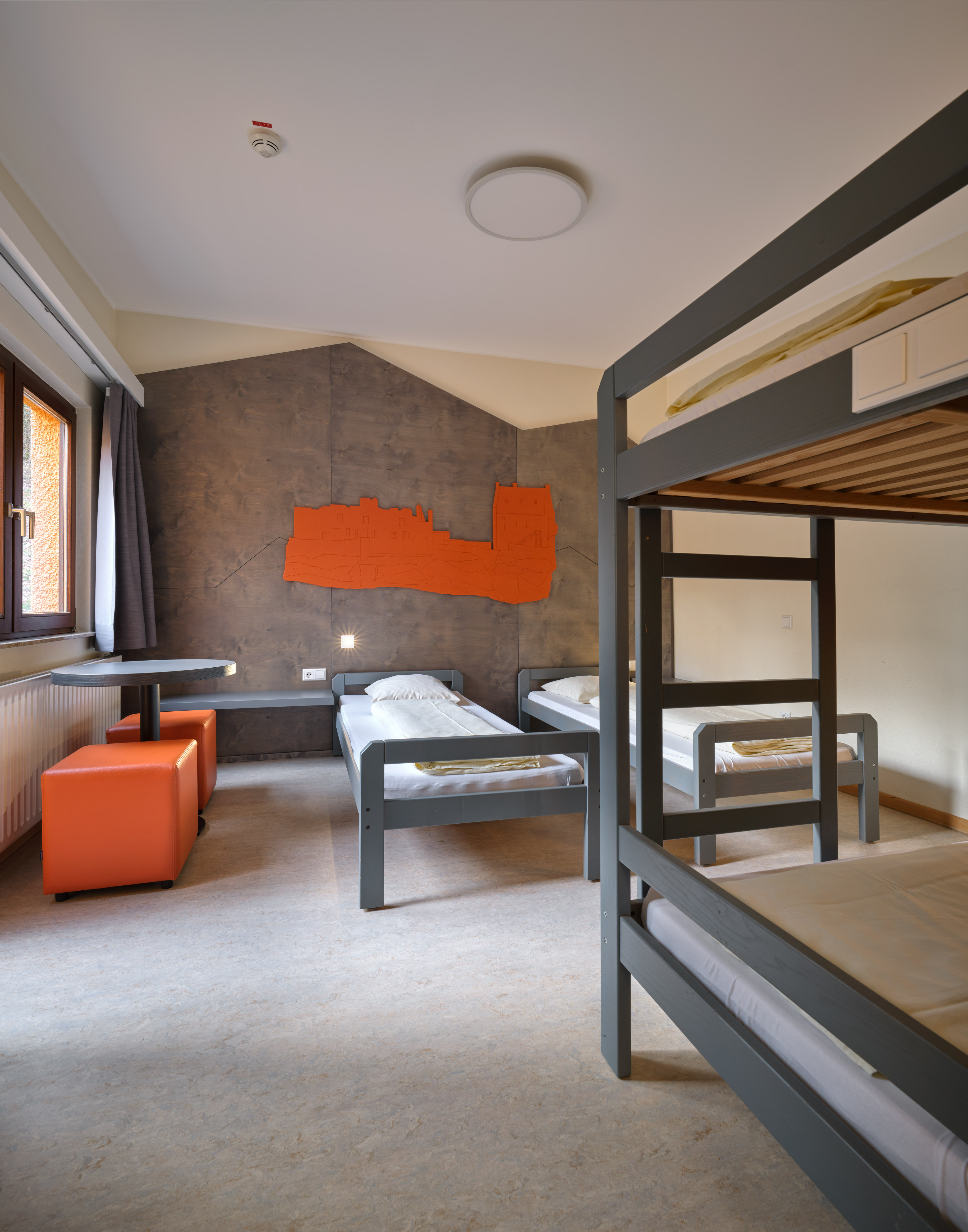 Übernachten Sie in der familienfreundlichen Jugendherberge Larochette im Herzen der Region Müllerthal - Kleine Luxemburger Schweiz. Doppelzimmer und Bungalows stehen den Gästen zur Verfügung.